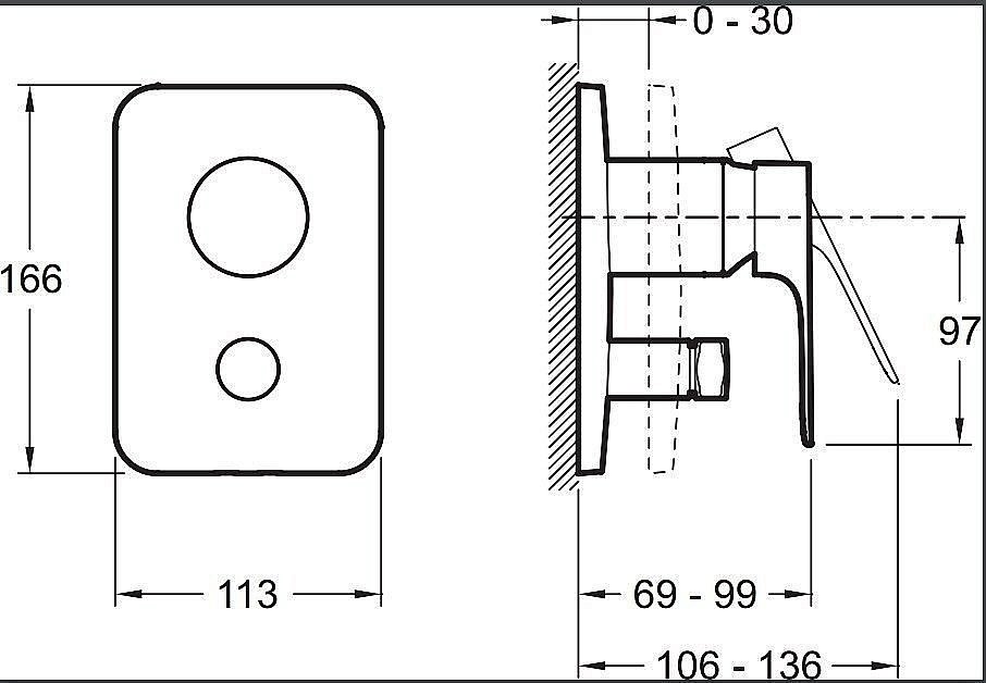 ALEO+ - Встраиваемый смеситель с переключателем на 2 выхода, лицевая панель
