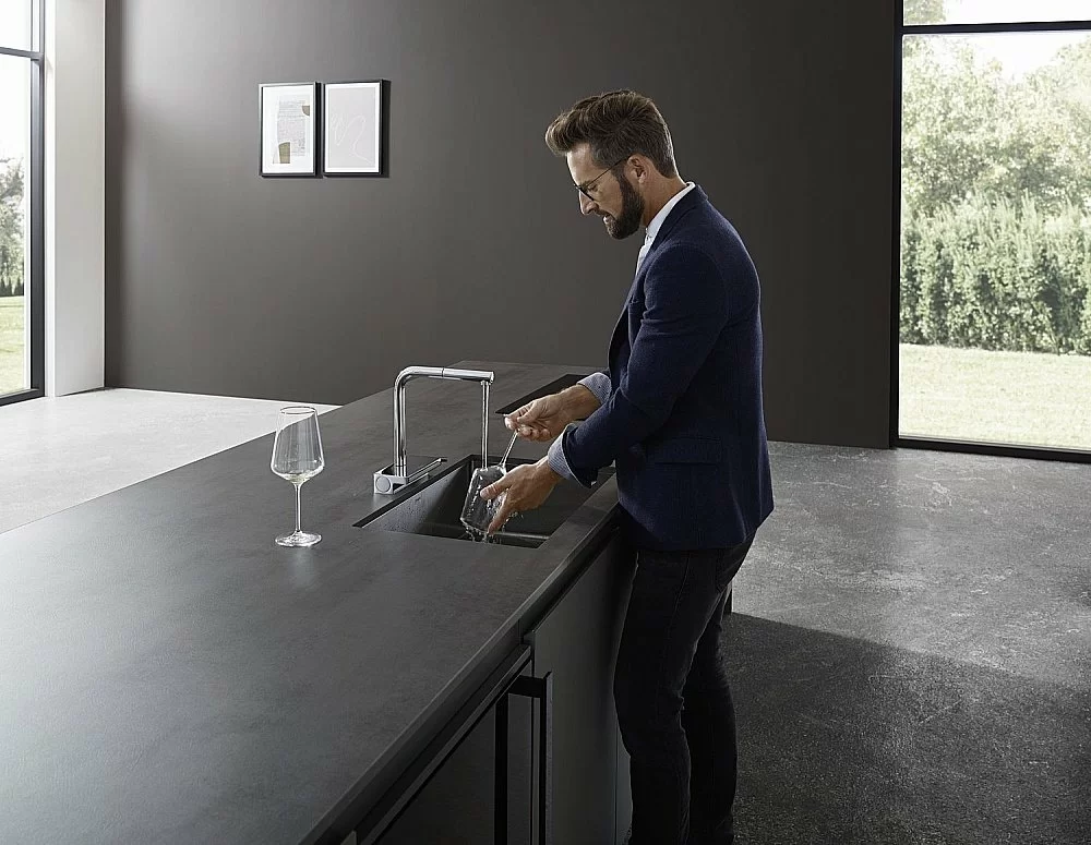 Переключение струи SatinFlow на струю из излива осуществляется нажатием кнопки