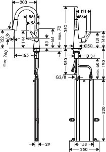 Кухонный смеситель однорычажный, 160, с вытяжным душем, 2jet Hansgrohe 73850800