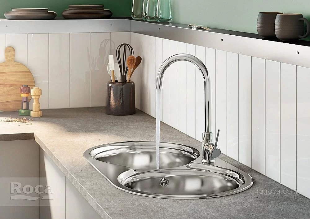 Roca Etna Смеситель однорычажный для кухни, хром - установка на одно отверстие; - высокий поворотный излив; - гибкая подводка 3/8"; - ColdStart; - Roca EverShine® хромированная поверхность, надежная защита от коррозии и ослепительный вид смесителей на всем протяжении срока эксплуатации.