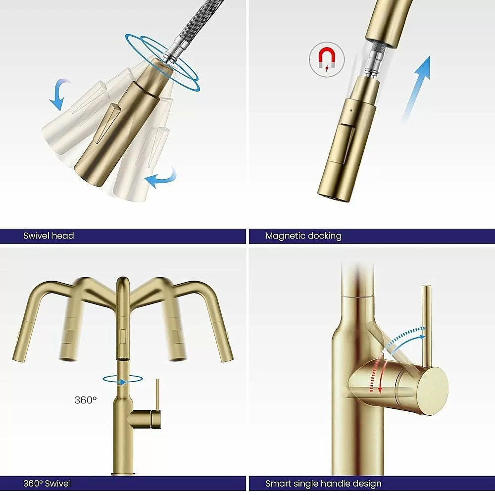 • Смеситель для кухни с выдвижным изливом • Способ монтажа: горизонтальный • Излив: навесной поворотный • Количество монтажных отверстий: 1 • Магнитный держатель лейки • Длина вытяжения шланга лейки 400 мм • Аэраторы • Керамический картридж • Материал: латунь Комплектация: • Смеситель - 1 шт. • Выдвижная лейка 2-х режимная, с магнитным держателем - 1 шт. • Шланг лейки 1,4м - 1 шт. • Набор креплений - 1 шт. • Гибкая подводка - 2 шт. • Противовес - 1 шт. • Инструкция - 1 шт. Гарантия: 5 лет.
