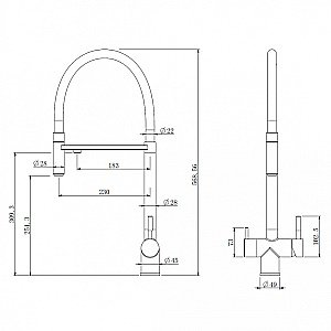 • Выдвижная лейка для удобства мытья посуды и очистки кухонных поверхностей.