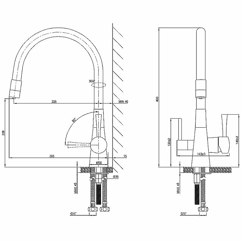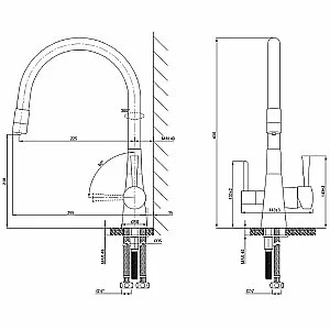 • Излив: поворотный, гибкий, с каналом для питьевой воды.