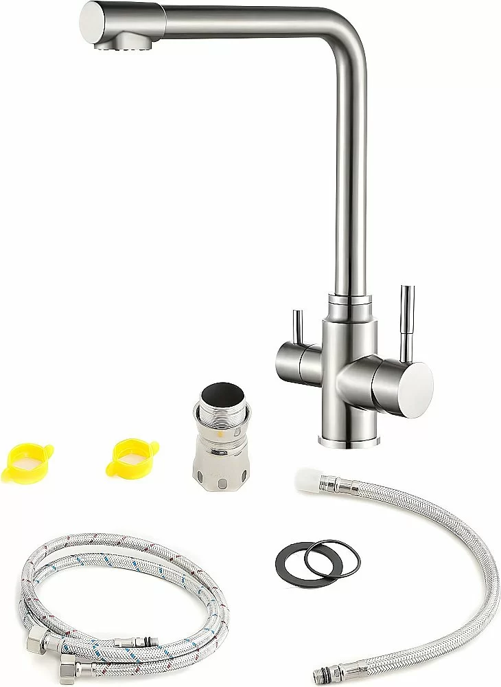 Orange BONI M15-008NI – функциональный кухонный смеситель 2-в-1 с подачей обычной и фильтрованной воды. Стильное никелевое покрытие обеспечивает долговечность и устойчивость к износу.