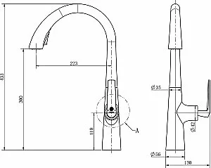 Orange BONI M15-120CR – функциональный кухонный смеситель с вытяжным душем и двумя типами струй. Обеспечивает удобство в использовании и гибкость в управлении потоком воды.