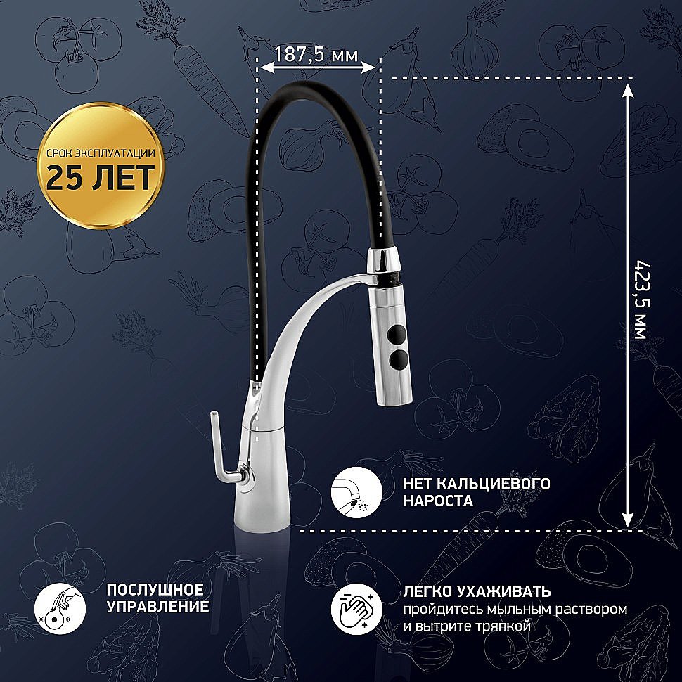 • Корпус выполнен из латуни с технологией двойного покрытия (никелирование и хромирование), устойчив к ржавчине и известковому налету.