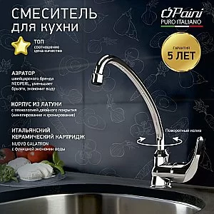 Авторский дизайн смесителей PAINI теперь доступен и в среднем ценовом сегменте! Классическая форма излива кухонного смесителя и комфортная в работе ручка (рычаг) обтекаемой формы.