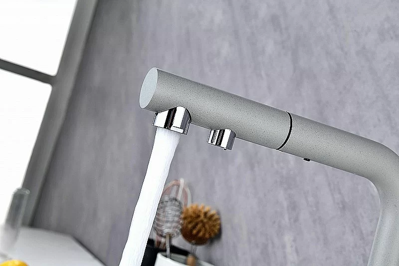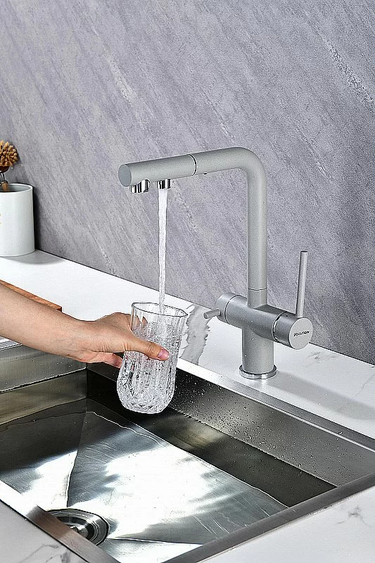 Смеситель для кухни Paulmark Serpentine Se213222-GRS серый дым