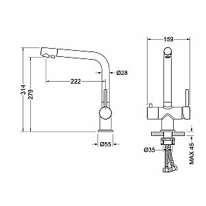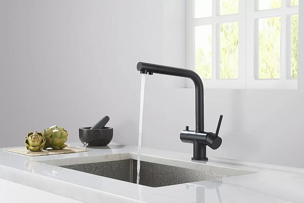 Смеситель для кухни с подключением фильтра Timo Saona 2396/03F черный. Материал: латунь. Цвет: черный матовый. Картридж: 35мм. Гарантия: 5 лет.