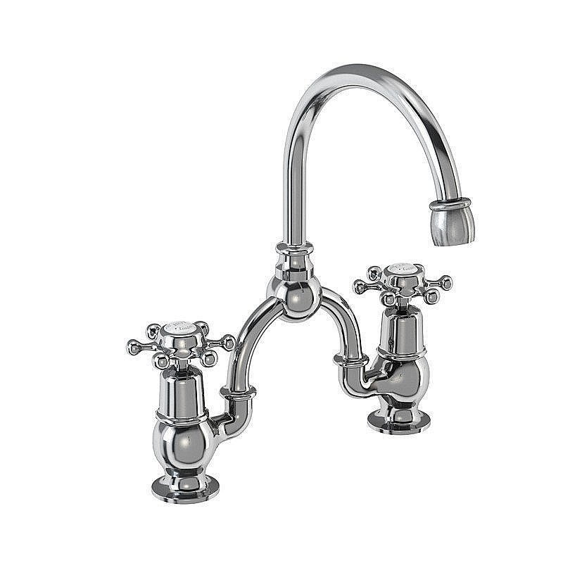 Хотите, чтобы ваша комната для гигиенических процедур выглядела богато и великолепно? Вам поможет в этом этот шикарный смеситель, выполненный в виде арки. Данная модель станет подходящим приобретением к любой раковине Burlington на два отверстия.