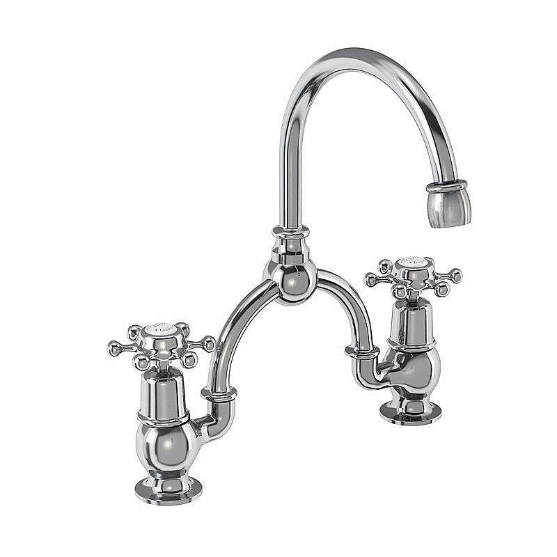 Смеситель для раковины Burlington BI28-QT на 2 отверстия (230мм между осями) с изогнутым изливом подходит только для раковины B14, цвет хром.