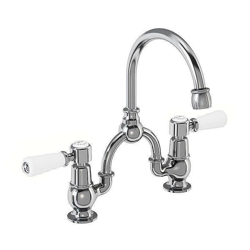 Хотите, чтобы ваша комната для гигиенических процедур выглядела богато и великолепно? Вам поможет в этом этот шикарный смеситель, выполненный в виде арки. Данная модель станет подходящим приобретением к любой раковине Burlington на два отверстия.