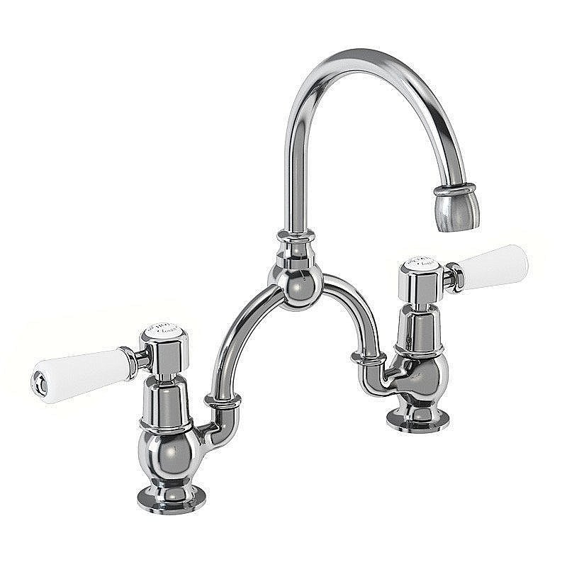 Смеситель для раковины на 2 отверстия с изогнутым изливом и скрытым сливом-переливом KE28-QT от английской компании Burlington.