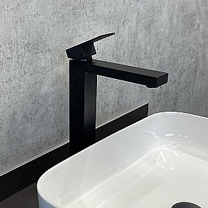 Торговая марка: Comforty Артикул: FC045B-CMT Цвет: черный Материал: латунь Монтаж: на раковину Смеситель для раковины/умывальника c "квадратным" граненым дизайном Однорычажный Излив с выносом 165 мм Высота смесителя 310 мм Монтаж на одно отверстие Аэратор Neoperl Керамический картридж Sedal 35 мм Гибкая подводка 600 мм Смеситель может устанавливаться на столешницу совместно с отдельностоящими раковинами чашами