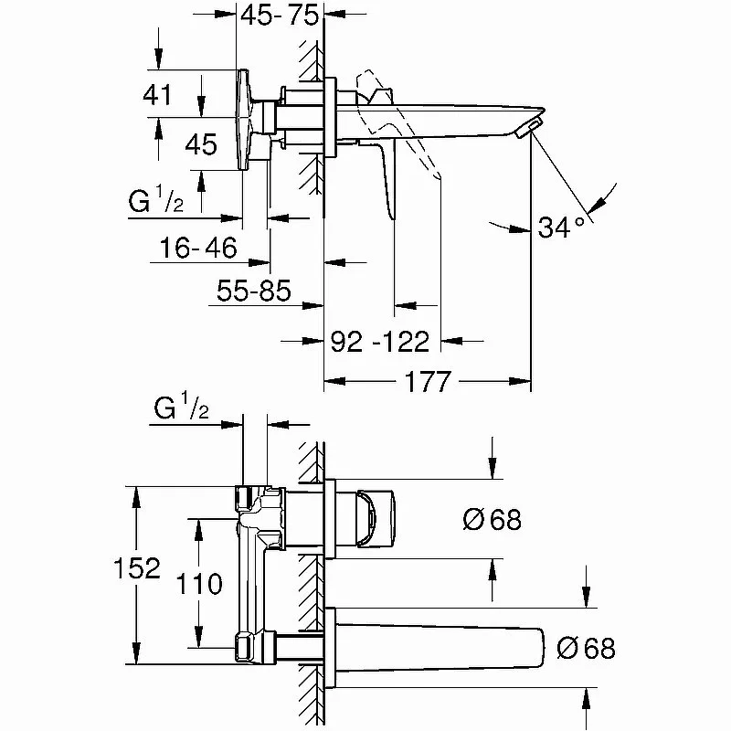 • Технология Grohe StarLight: хромированное покрытие поверхности.