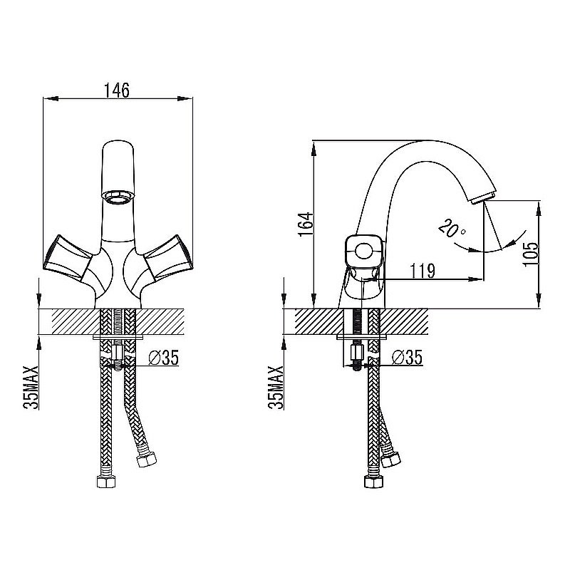 • Тип подводки: гибкая.