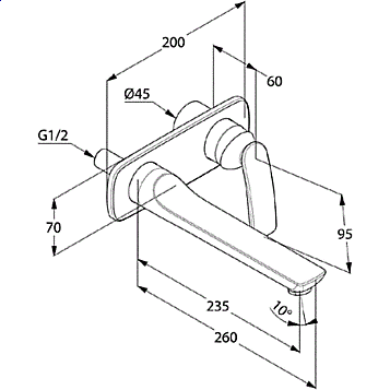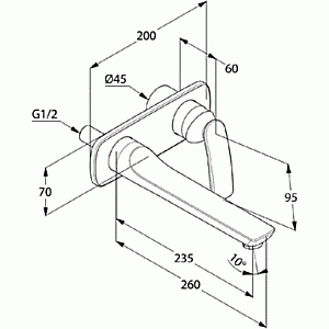 Длина излива 235 мм.