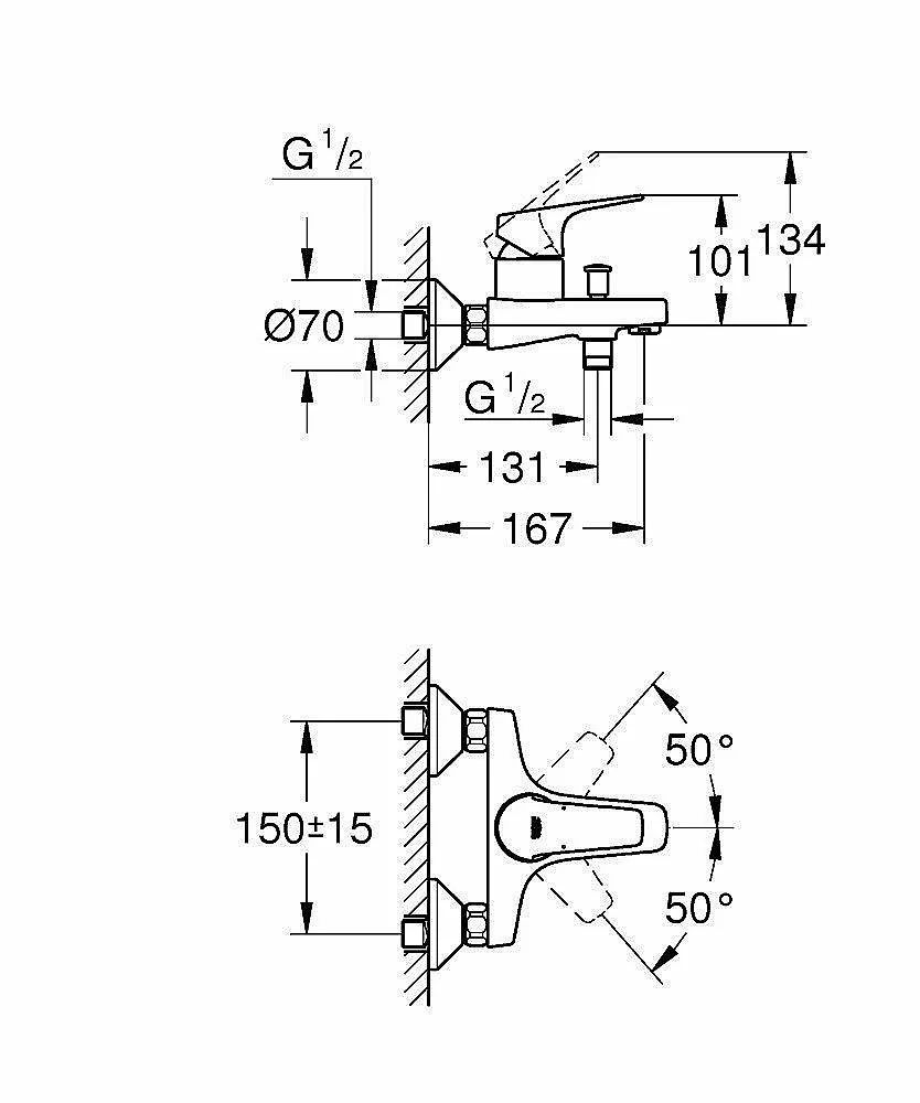 BAUFLOW СМЕСИТЕЛЬ ОДНОРЫЧАЖНЫЙ ДЛЯ ВАННЫ, DN 15