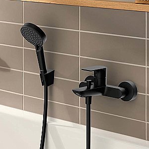 Смеситель для ванны наружного монтажа Rebris E сочетает в себе вневременной современный дизайн с высококачественными функциями из прочного металла. Удобной плоской ручкой установите комфортную температуру и объем воды одним движением руки. Встроенный аэратор с функцией AirPower создает мягкую струю воды, которая плавно течет в ванну.