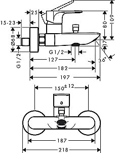 Смеситель для ванны из коллекции Rebris E от немецкого производителя Hansgrohe.