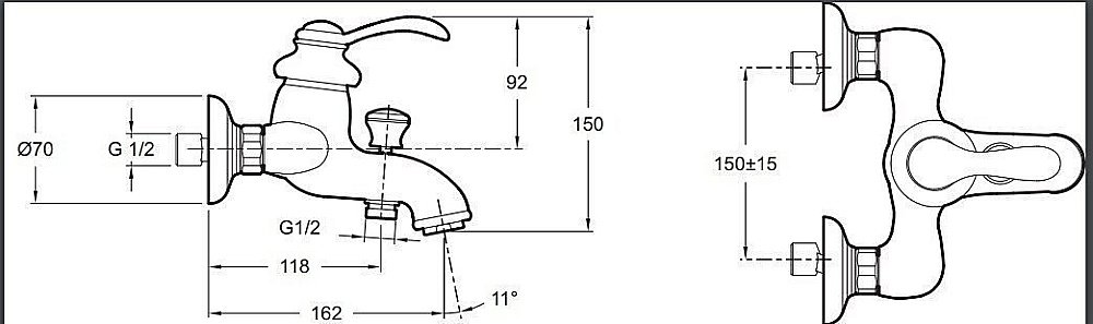 Технические характеристики • Вес: 2,2 кг • Расход воды: 20 л/мин при давлении 3 бар • Механизм: Керамический картридж • Однорычажный смеситель в стиле ретро • Аэратор с антиизвестковым покрытием • Встроенный держатель для душа