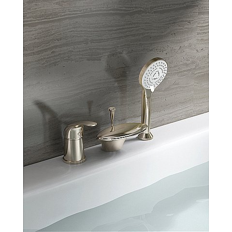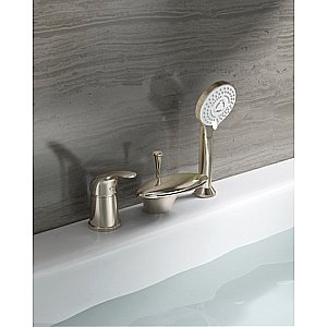 Однорычажный смеситель для ванны с душевым набором Orange Iris предназначен для установки на борт ванны. Оригинальная футуристичная форма – одна из эстетических особенностей данной модели.