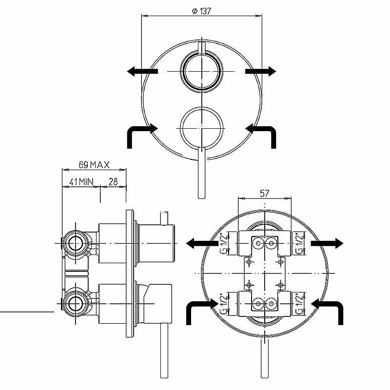 • Встраиваемый монтаж скрывает все соединения и оставляет на виду только рычаг управления, экономя пространство.