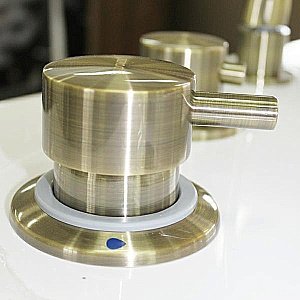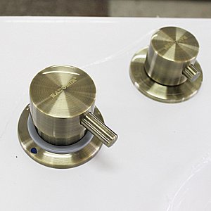 Первый рычаг служит для выбора режима и имеет три положения: наполнение через излив (при выборе дополнительной опции "излив"), наполнение через ручную лейку, наполнение через джеты (при выборе дополнительной опции "гидромассаж").