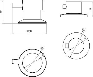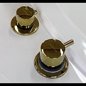 Первый рычаг служит для выбора режима и имеет три положения: наполнение через излив (при выборе дополнительной опции "излив"), наполнение через ручную лейку, наполнение через джеты (при выборе дополнительной опции "гидромассаж").