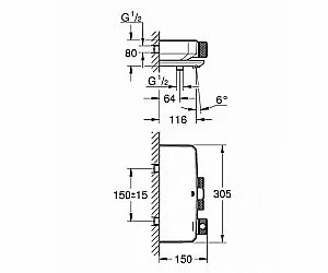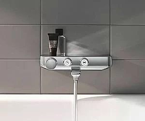 Термостат для ванны, Grohe Grohtherm SmartControl настенный монтаж GROHE CoolTouch Полностью исключается вероятность ожога о внешнюю поверхность смесителя GROHE StarLight хромированная поверхность GROHE TurboStat встроенный термоэлемент стопор безопасности при 38°C GROHE SafeStop Plus (дополнительная опция) дополнительный ограничитиель температры при 43° C SmartControl нажать для вкл/выкл, повернуть для увеличения напора воды от рижима EcoJoy до максимального напора воды заменяемые символы отвод для душа снизу 1/2 дюйма возможность одновременного включения нескольких точек водоотвода с защитой от обратного потока Гарантия: 5 лет