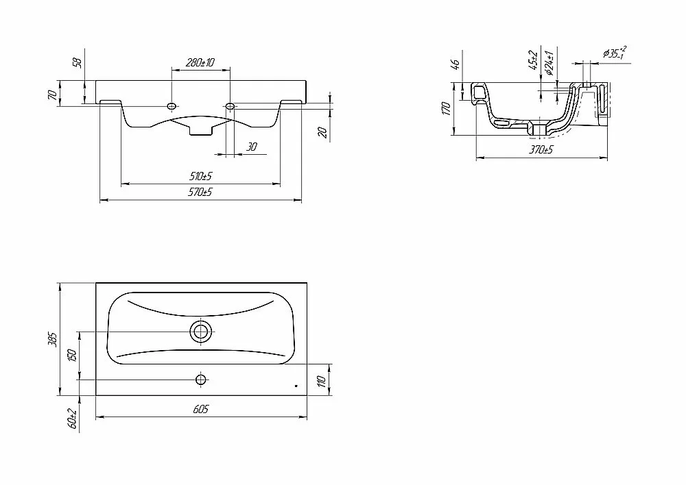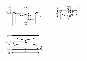 Прямоугольная мебельная раковина MODUO SLIM с узким профилем, с отверстием под смеситель. Раковина керамическая белого цвета.