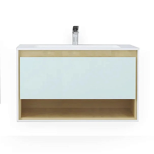 Подвесная тумба под раковину с одним выдвижным ящиком и нишей. Представляет собой функциональное, надежное и практичное решение, которое совместимо с современными интерьерами. Внешне фасад покрыт прочным покрытием, которое прекрасно предотвращает вздутие основного материала от повышенной влажности. Материал изготовления: МДФ и ДСП с классом эмиссии E1. Покрытие панелей: премиальная пленка (Южная Корея).