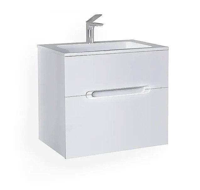 Подвесная тумба под раковину с двумя выдвижными ящиками. Представляет собой функциональное, надежное и практичное решение, которое совместимо с современными интерьерами. Конструкция тумбы удобно разделена на два отделения с ящиками. Утопленные внутрь фасада ручки обеспечивают легкое открывание и закрывание ящиков. Внешне фасад покрыт прочным покрытием, которое прекрасно предотвращает вздутие основного материала от повышенной влажности. Материал изготовления: МДФ и ДСП с классом эмиссии E1. Покрытие панелей: премиальная пленка (Южная Корея).