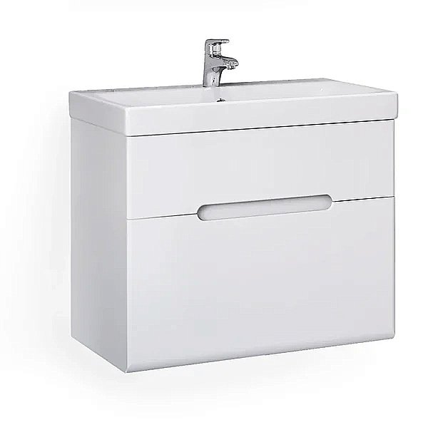 Подвесная тумба под раковину с двумя выдвижными ящиками. Представляет собой функциональное, надежное и практичное решение, которое совместимо с современными интерьерами. Конструкция тумбы удобно разделена на два отделения с ящиками. Утопленные внутрь фасада ручки обеспечивают легкое открывание и закрывание ящиков. Внешне фасад покрыт прочным покрытием, которое прекрасно предотвращает вздутие основного материала от повышенной влажности. Материал изготовления: МДФ и ДСП с классом эмиссии E1. Покрытие панелей: премиальная пленка (Южная Корея).