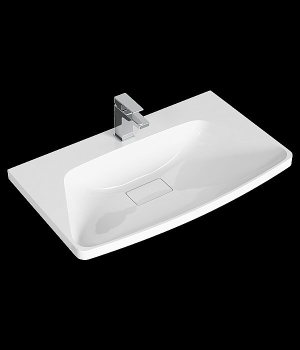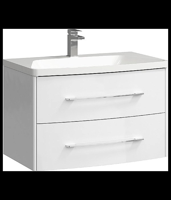 Подвесная тумба в цвете белый глянец с двумя ящиками с умывальником из литьевого мрамора