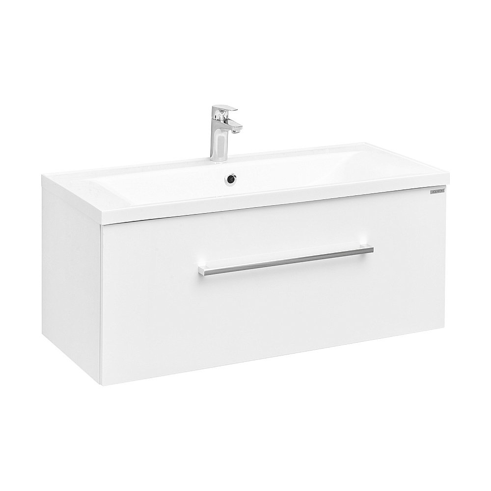 Тумба с раковиной Акватон Мадрид М 1 ящик/Премьер М 100 белая глянцевая