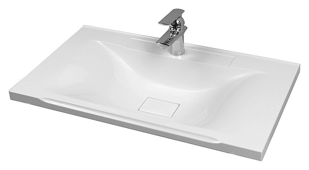 Раковина изготовлена из литого мрамора с системой слива-перелива и оснащена одним отверстием под смеситель.