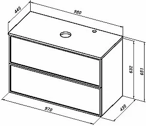 В столешнице 2 отверстия: под слив раковины и под смеситель