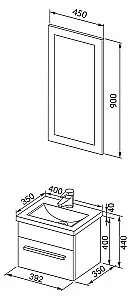 Акванет Нота 40 — компактный набор мебели, который станет оптимальным вариантом для ванной комнаты, не располагающей большими габаритами. Неглубокая навесная тумба с ящиком для хранения и такая же миниатюрная раковина. Зеркало со встроенным светильником, добавляя в интерьер света, визуально увеличивает пространство.