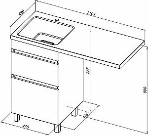 Раковина-столешница Madera Kamilla 110 316652 левая