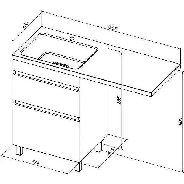 Раковина-столешница Madera Kamilla 120 316651 правая