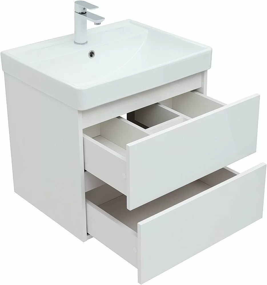 Тумба с раковиной Aquanet Вега 60 белый глянец