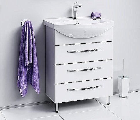 - тумба под умывальник напольная 3 ящика, цвет белый, 65 см 598*805*318