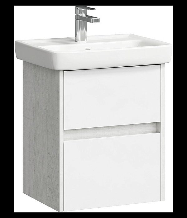 Подвесная тумба 50 см с двумя ящиками. Цвет: дуб канадский. С умывальником. Корпус покрытие: ламинат. Фасад покрытие: эмаль глянцевая. Гарантия: 2 года.