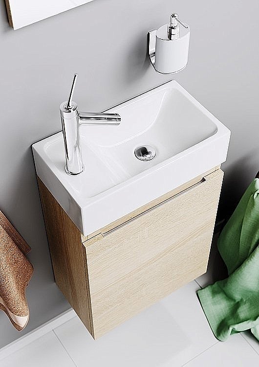 Коллекция Леон-МР представляет собой готовое решение для компактных и гостевых ванных комнат. Кромка на все элементы наносится с помощью лазера, что в разы повышает влагостойкость мебели.