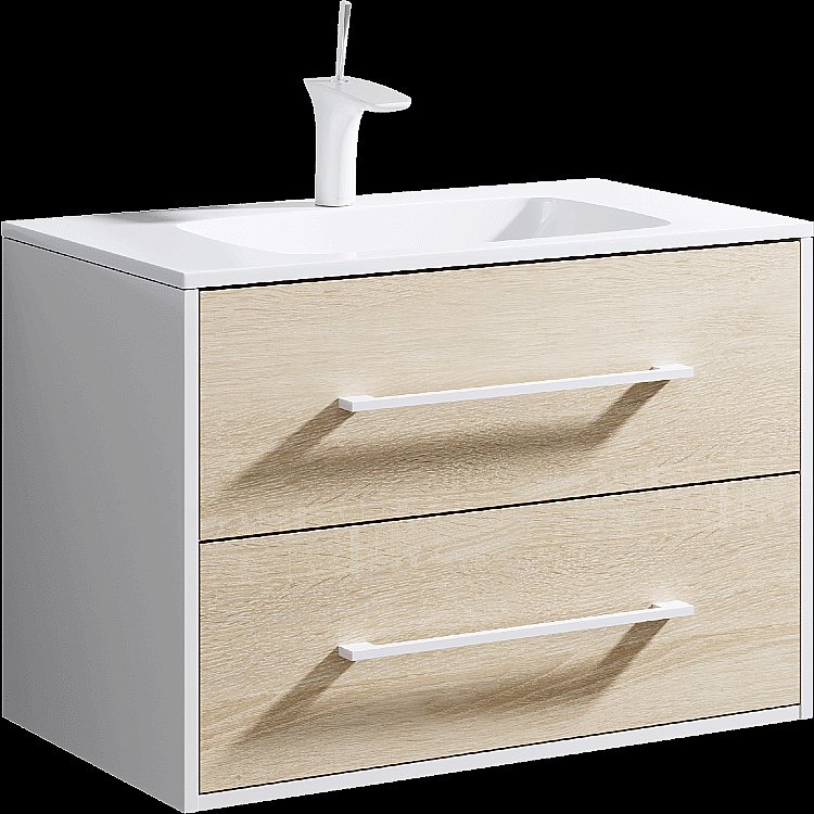 Набор мебели для ванной Aqwella Майами состоит из раковины и подвесной тумбы, имеющей 2 выдвижных ящика для хранения косметических принадлежностей, бытовой химии и банного текстиля.