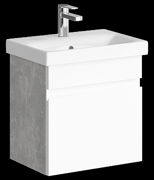 Подвесная тумба 50 см с одним ящиком. Цвет: бетон светлый. С умывальником. Корпус покрытие: ламинат. Фасад покрытие: эмаль глянцевая. Гарантия: 2 года.