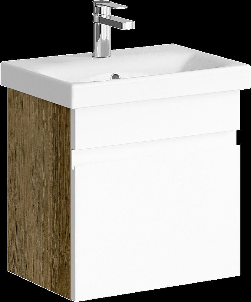 Подвесная тумба 50 см с одним ящиком. Цвет: дуб балтийский. С умывальником. Корпус покрытие: ламинат. Фасад покрытие: эмаль глянцевая. Гарантия: 2 года.