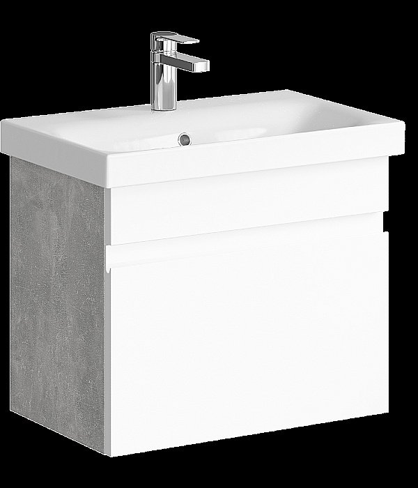 Подвесная тумба 60 см с одним ящиком. Цвет: бетон светлый. С умывальником. Корпус покрытие: ламинат. Фасад покрытие: эмаль глянцевая. Гарантия: 2 года.