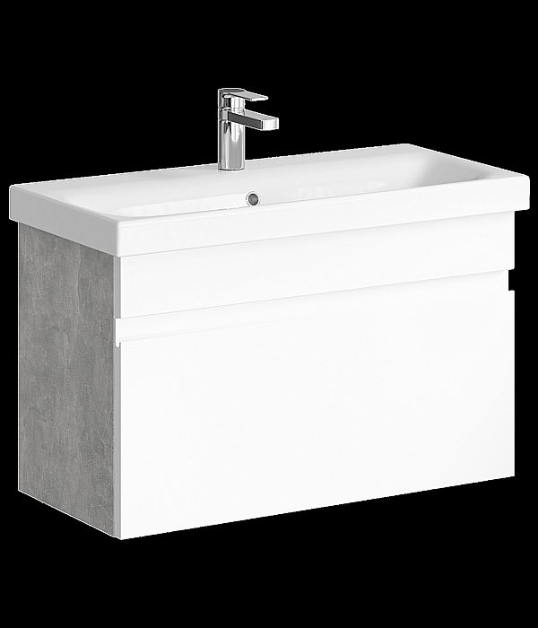 Подвесная тумба 80 см с одним ящиком. Цвет: бетон светлый. С умывальником. Корпус покрытие: ламинат. Фасад покрытие: эмаль глянцевая. Гарантия: 2 года.